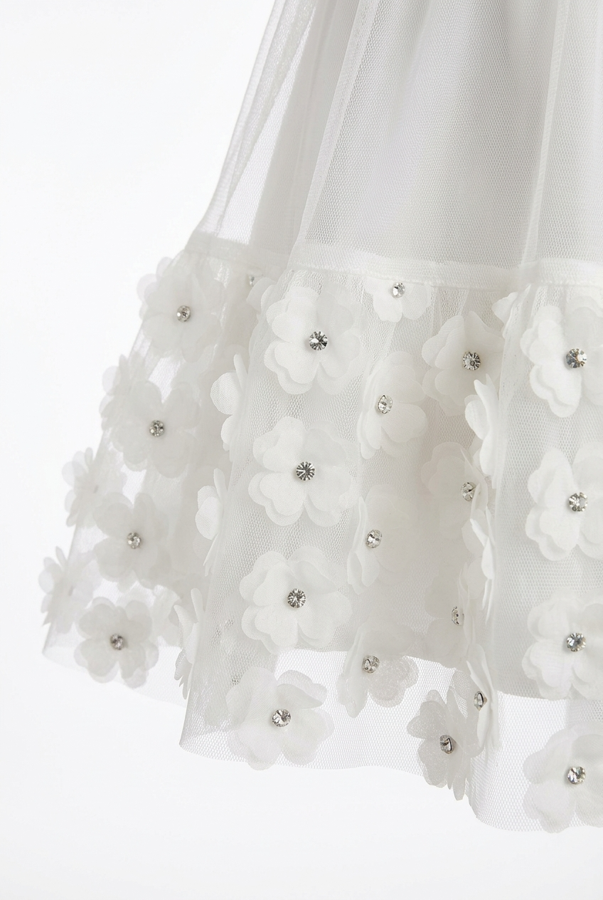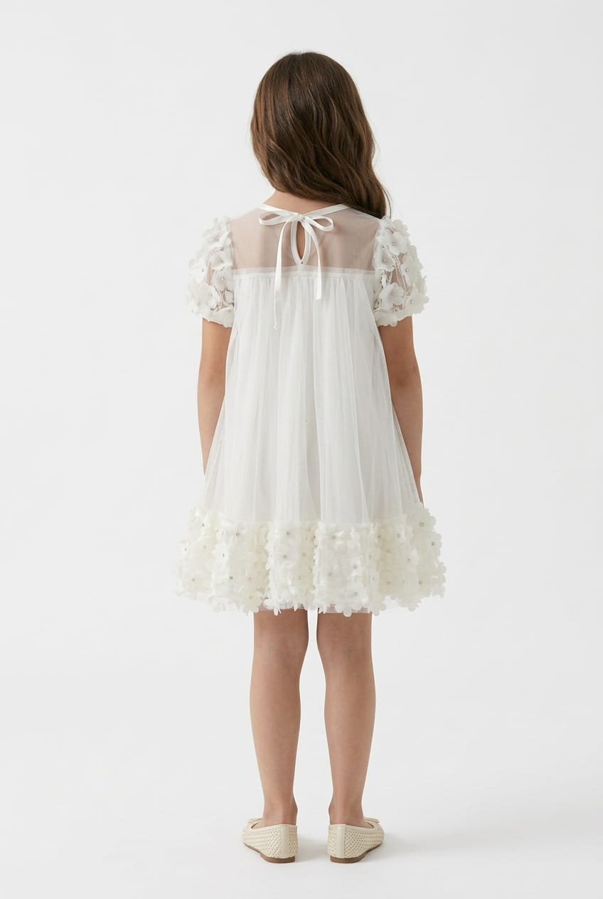 Barnklänning Romy – krämvit tyllklänning med 3D-blommor för flickor