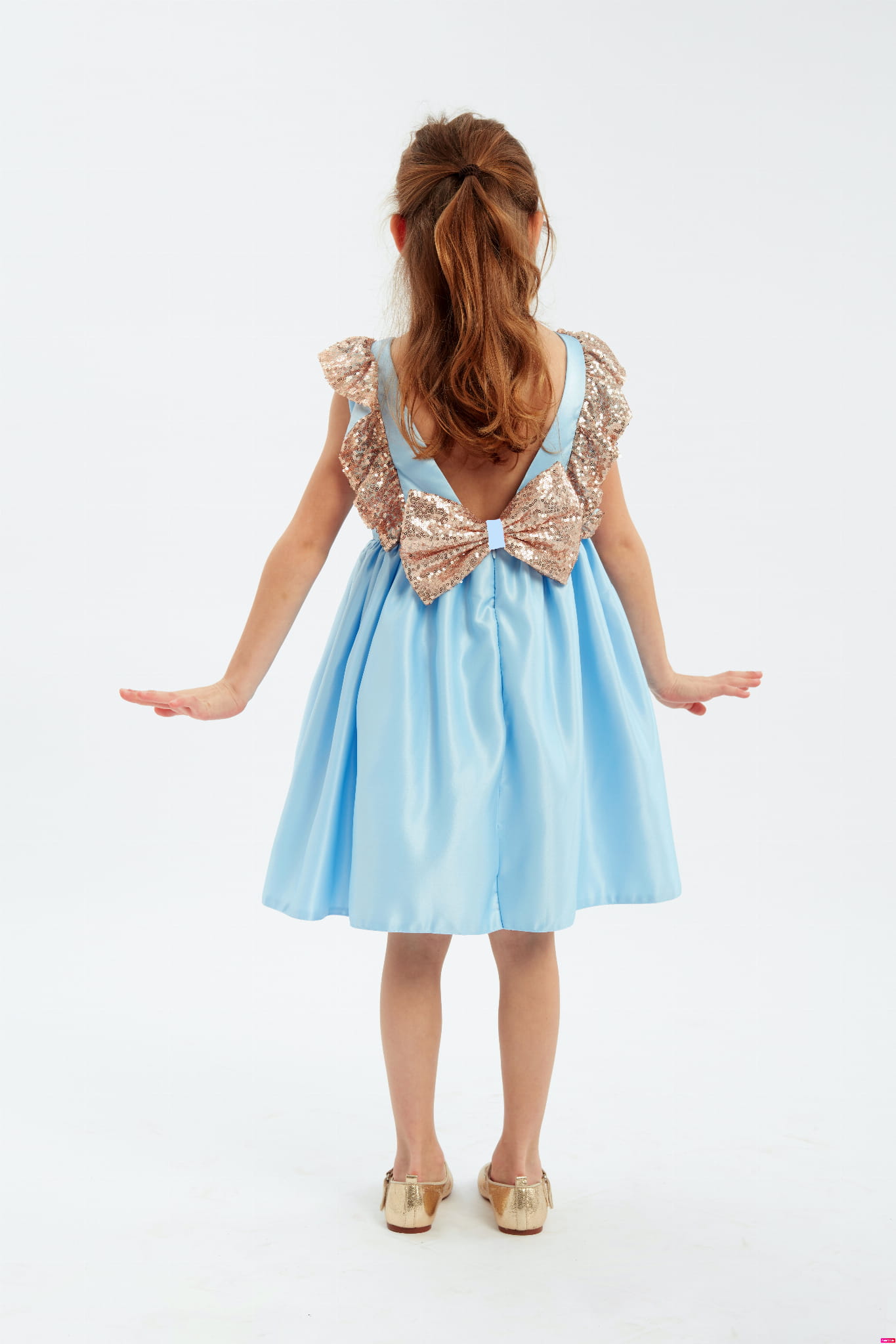 En vacker, elegant festklänning för flickan Capri i himmelsblå färg.