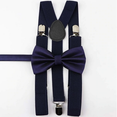 Elegant Pojkset med Hängslen och Fluga i Marinblå