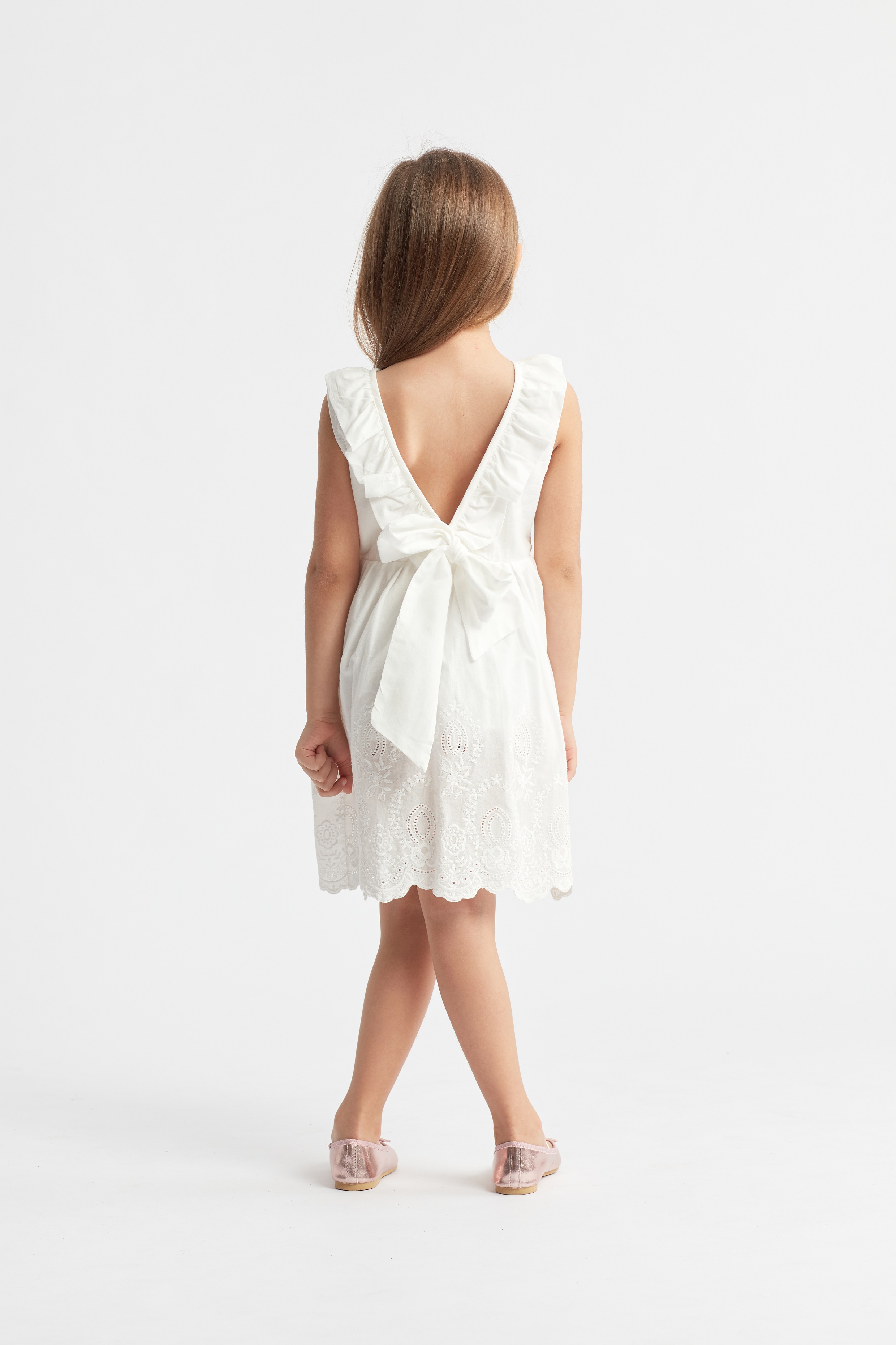 Trendig, bomullsklänning för flickor Emilie i vitt.
