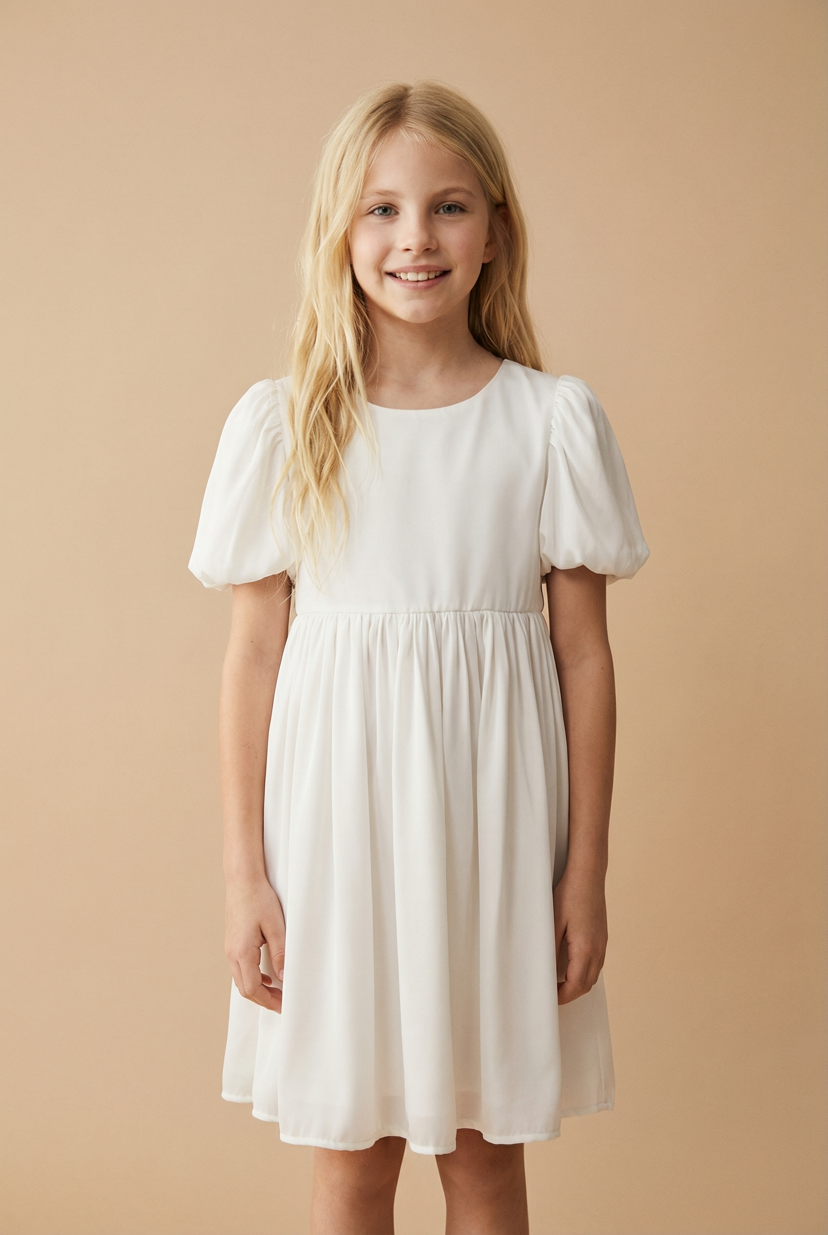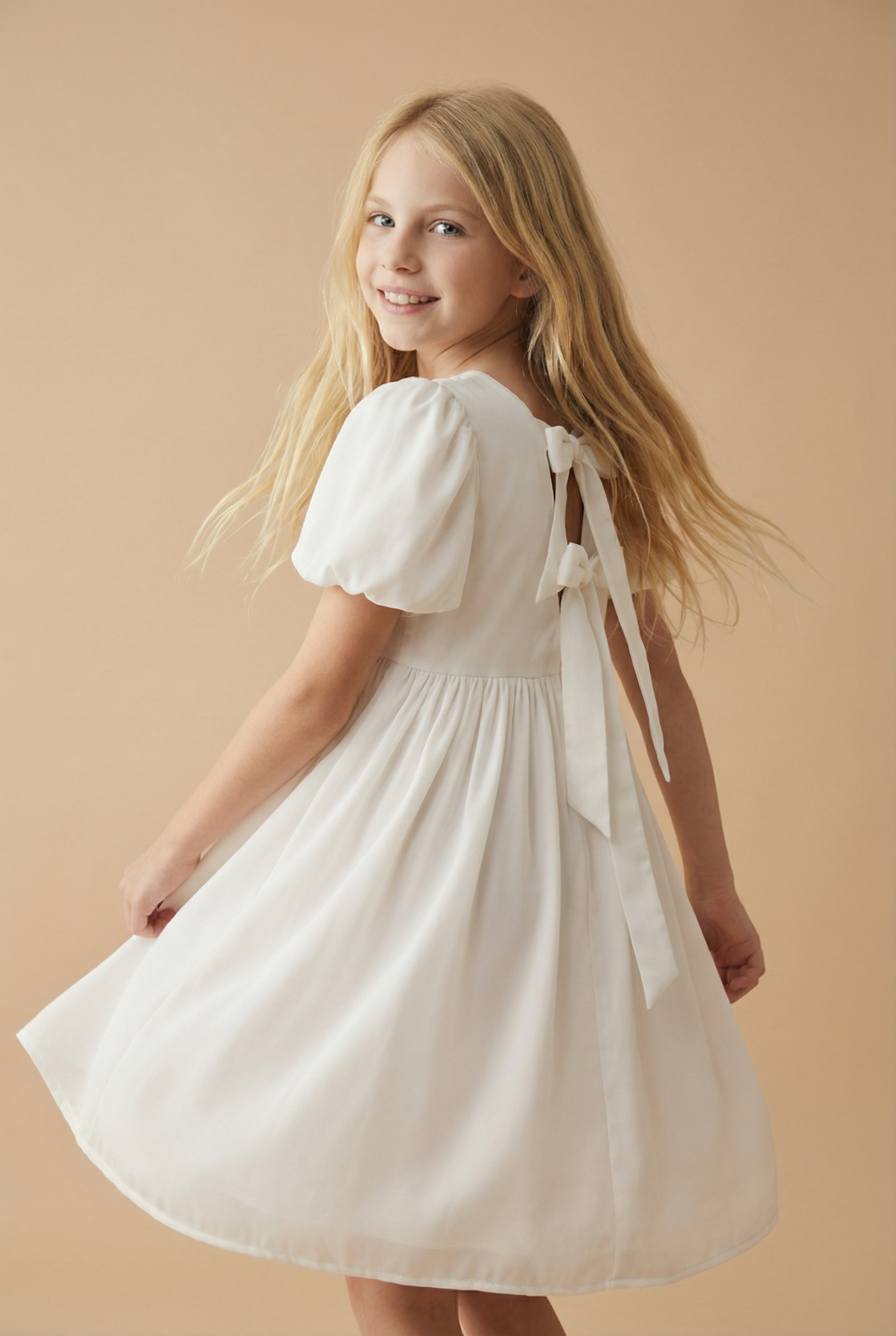 Det finns ögonblick i ett barns liv som vi önskar kunde vara för evigt. Den förväntansfulla tystnaden före ett bröllop, glädjen vid en skolavslutning i den svenska försommaren eller den första dansen på ett födelsedagskalas. Klänningen Sia är skapad för just dessa stunder. Med sin sofistikerade enkelhet och den mjuka, gräddvita nyansen, för den tankarna till klassisk elegans och oskuldsfull charm. Det är en klänning som inte bara klär ditt barn, utan som ramar in minnet av dagen.