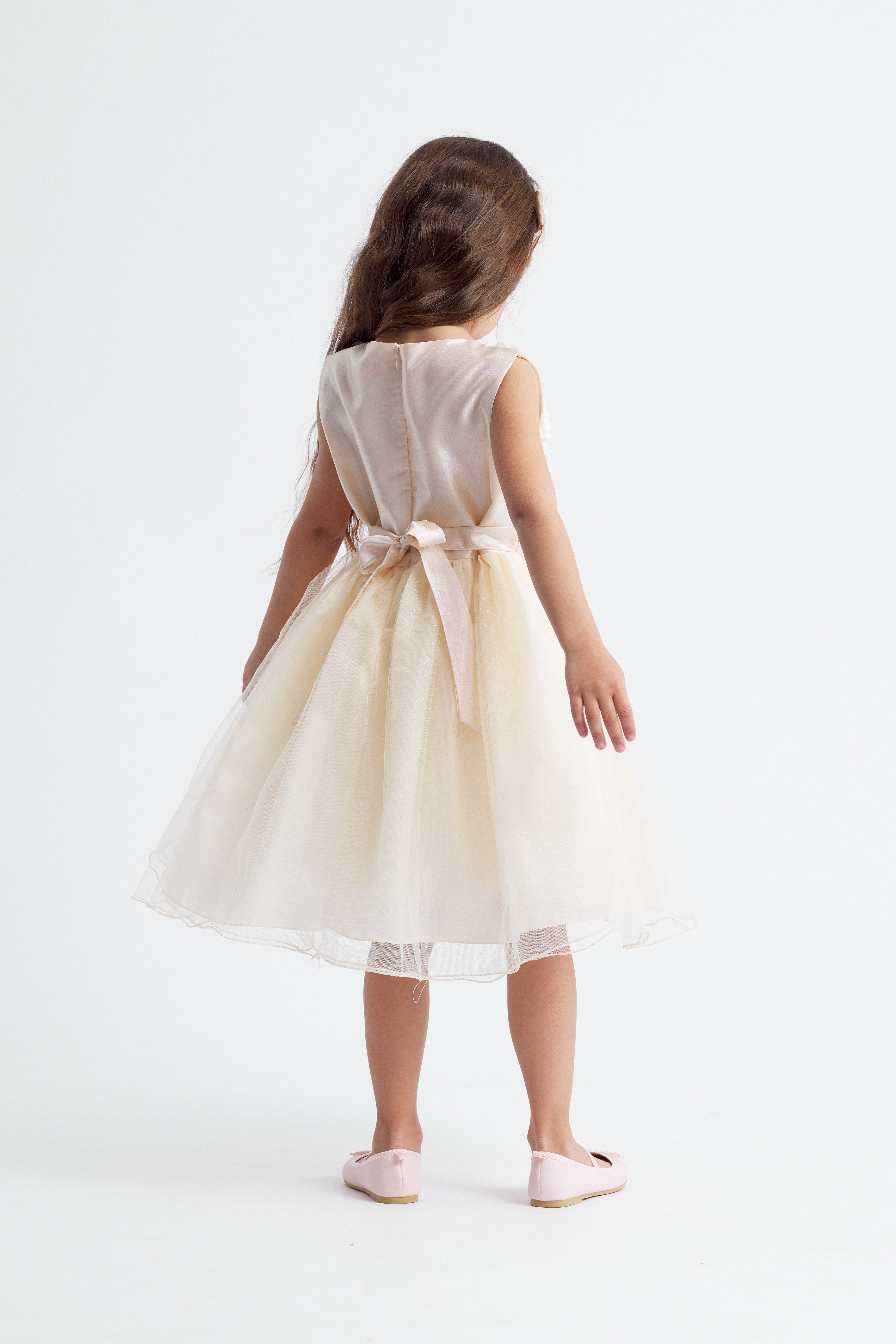 Exceptionell elegans i en subtil version Floria är ett alternativ för flickor som inte gillar för mycket prålighet, men uppskattar komfort och ett elegant utseende. Den beige färgen med guldglans gör att klänningen kan användas till många intressanta stylingar.
