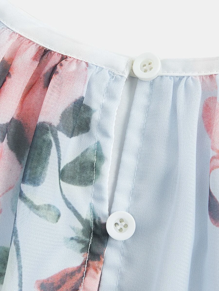 Vi presenterar den unika, eleganta flickklänningen Francesca i blått med ett blommigt mönster som kommer att få ditt barn att se fantastiskt ut och samtidigt betona hennes originalitet.