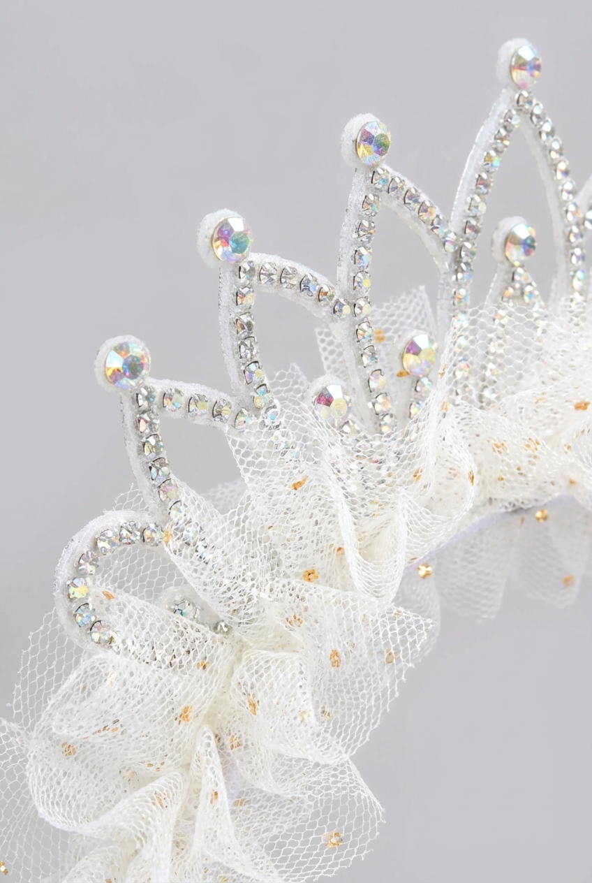 Gyllene Tyllkrona – Hårband för Flicka i Champagnefärg för Prinsessdrömmar och Festliga Stunder