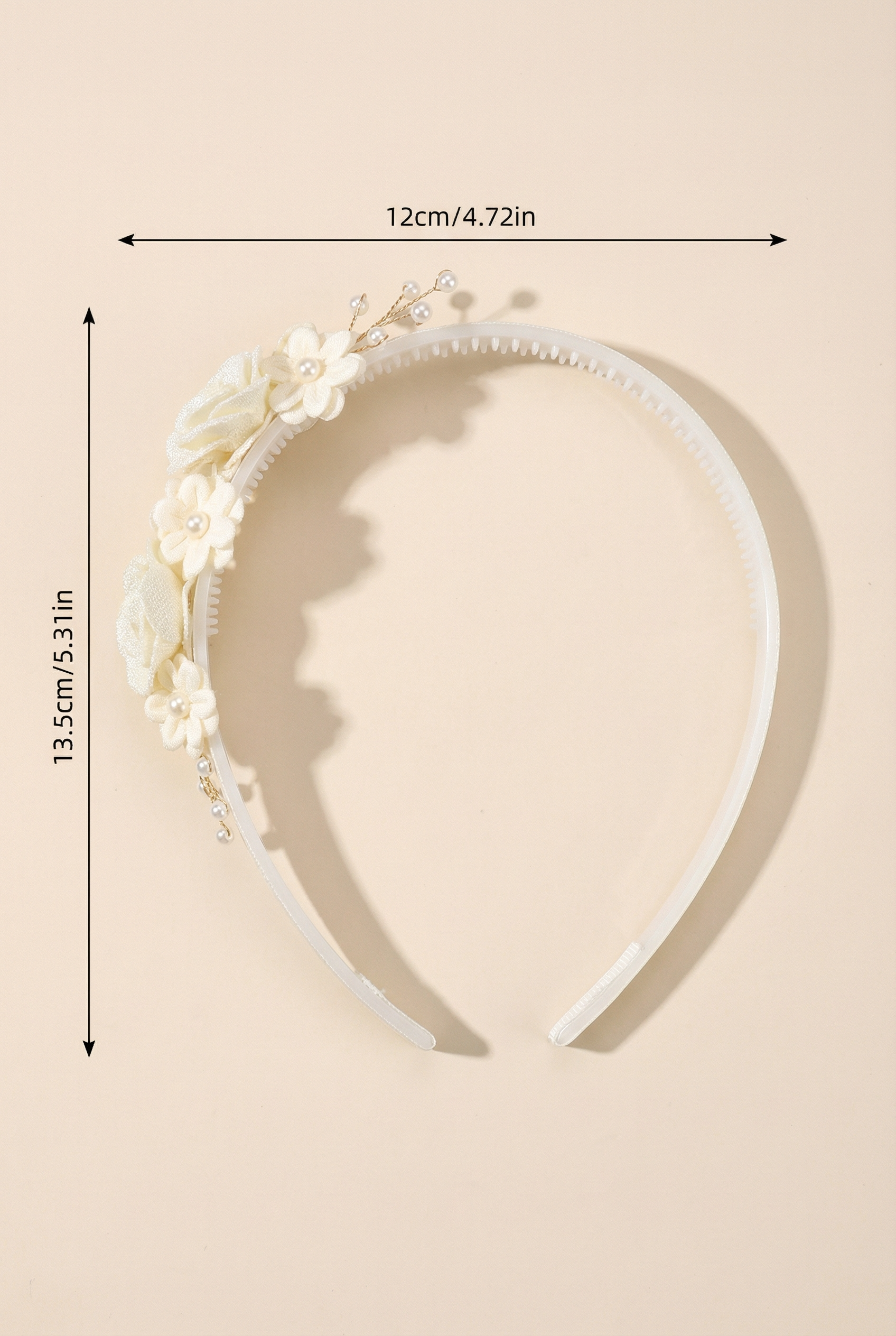 Hårband för flicka med blommor i gräddvit nyans – en romantisk detalj för livets stora ögonblick