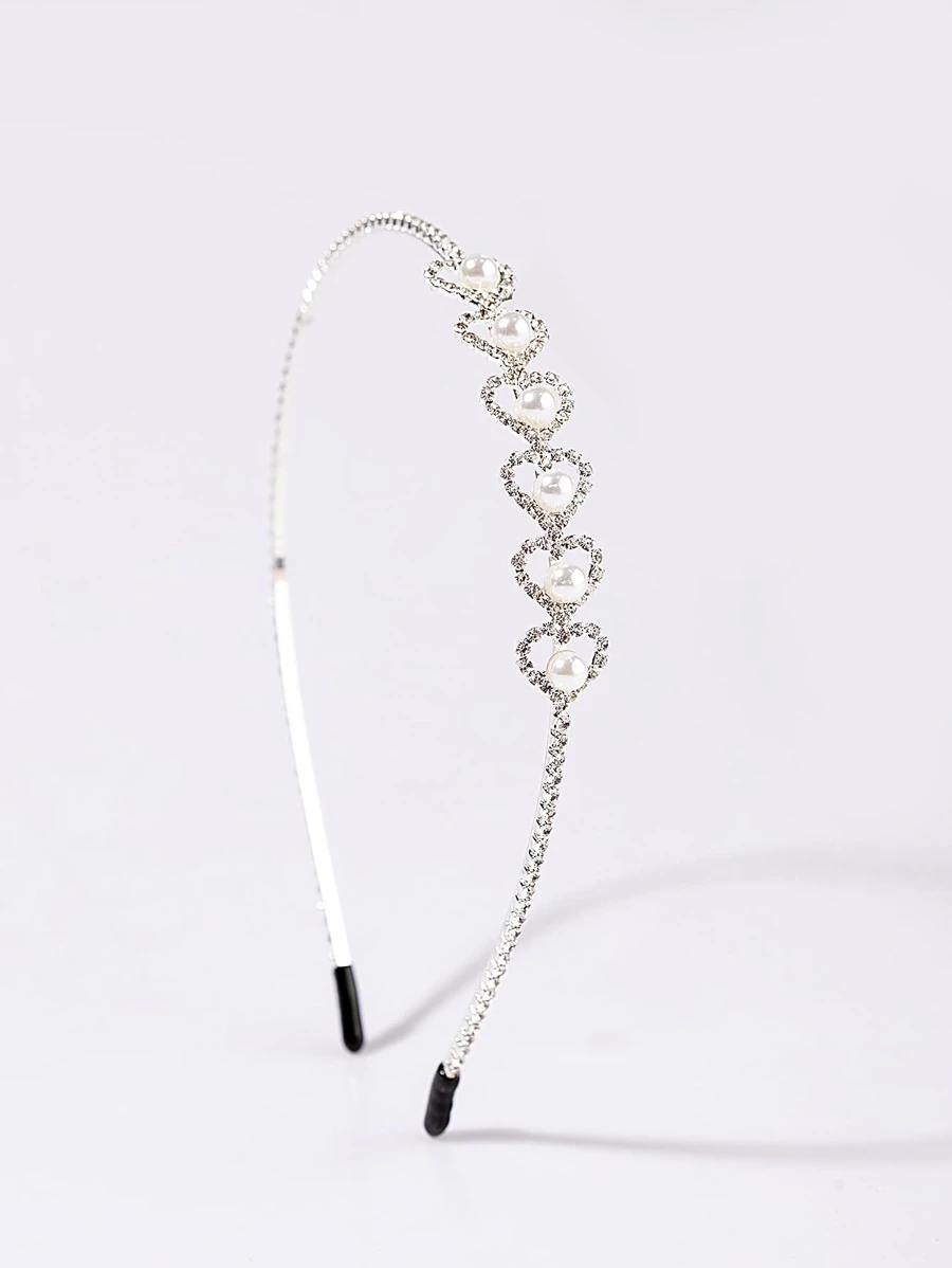 Detta eleganta hårband för flickor är silverfärgat, med kristaller arrangerade i en serie av hjärtan.
