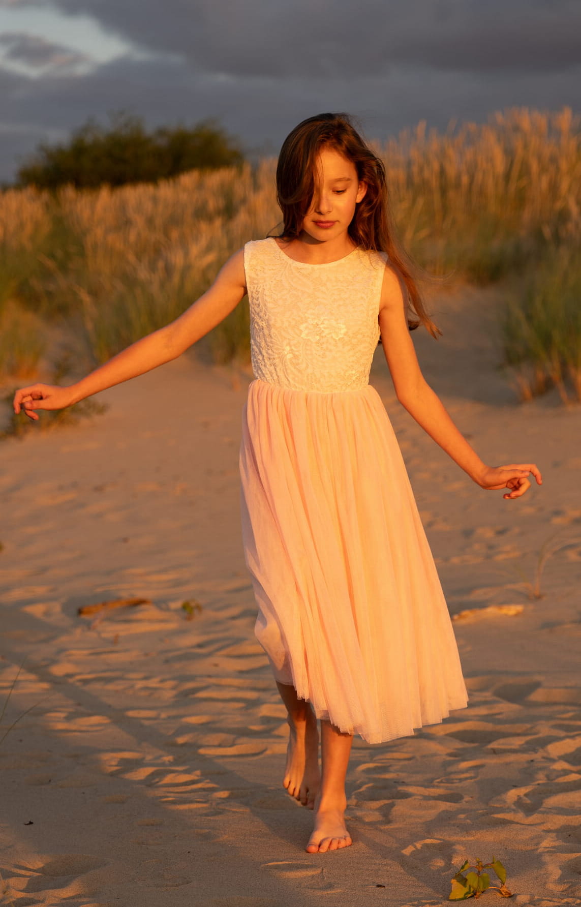 Denna eleganta klänning för flickor, Liv, är den perfekta outfiten för speciella tillfällen. Liv är en formell klänning designad speciellt för unga flickor och utgör ett utmärkt val för olika viktiga familjehögtider. Dess flickaktiga och eleganta snitt gör den till en praktisk outfit för olika speciella händelser. Den extraordinära subtiliteten och delikatessen som tillförs genom användningen av spets och tyll gör detta till en modell som framhäver din dotters bästa egenskaper och ger henne många stunder av glädje och fri lek.