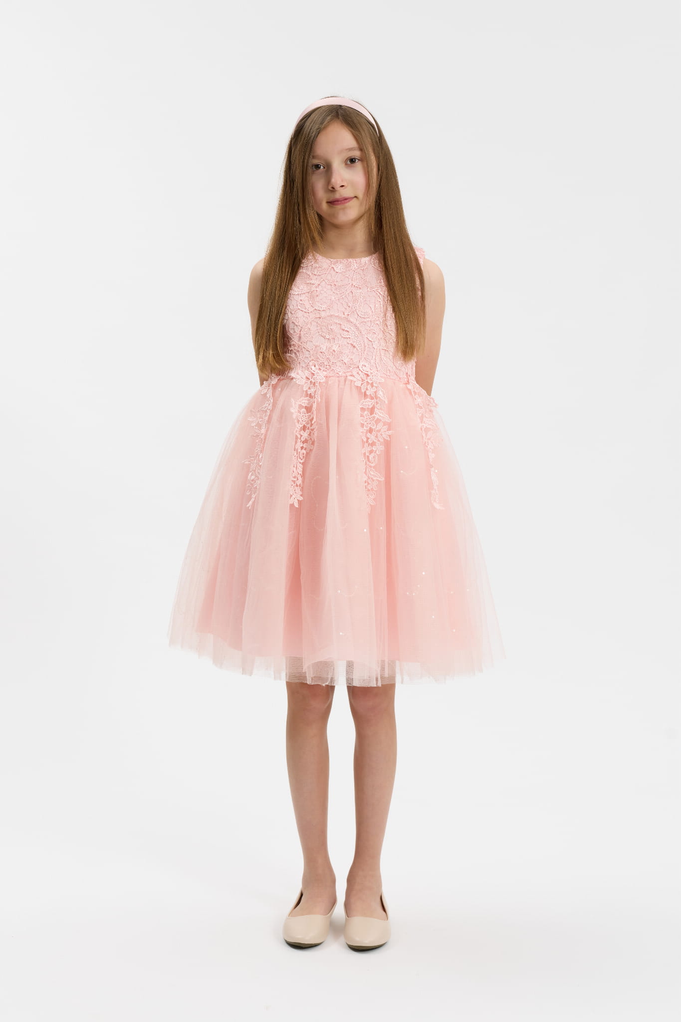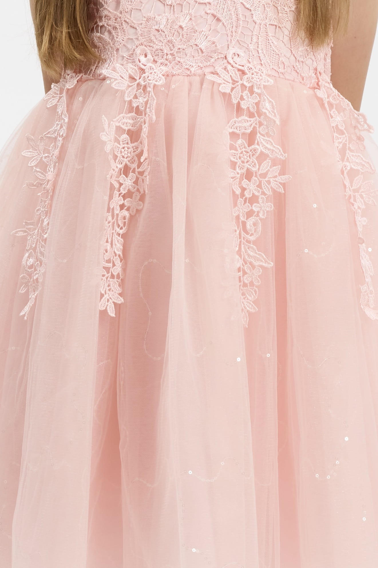 Evelina ljusrosa spetsklänning med tyll för flicka