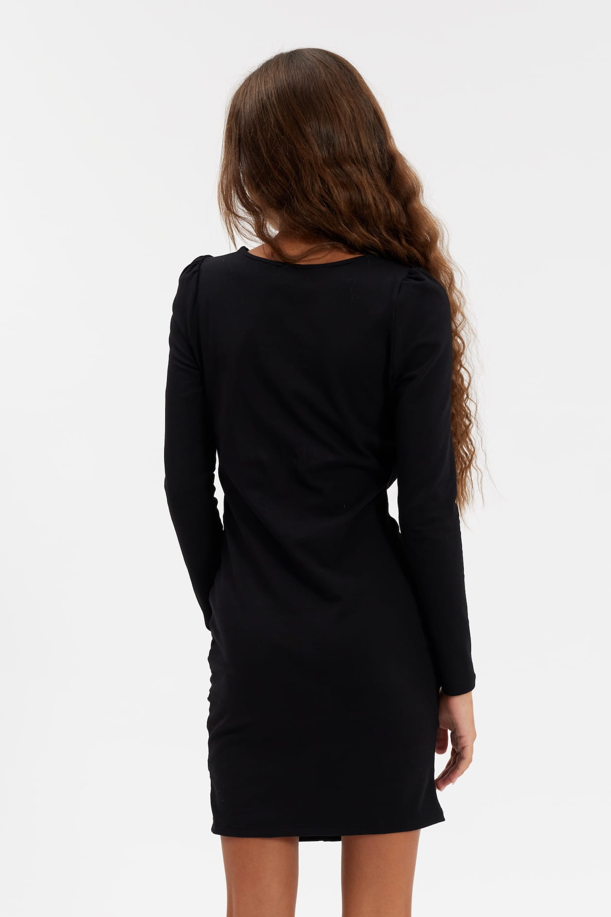 I en värld där mode ofta skriker, viskar Madison med en självsäker röst. Den djupt svarta nyansen är som sammet mot huden - ädel, diskret och ändå omöjlig att ignorera. När din dotter kliver in i ett rum iklädd denna klänning, stannar tiden upp för ett ögonblick. Inte för att plagget kräver uppmärksamhet, utan för att det framhäver den naturliga grace som redan finns där.