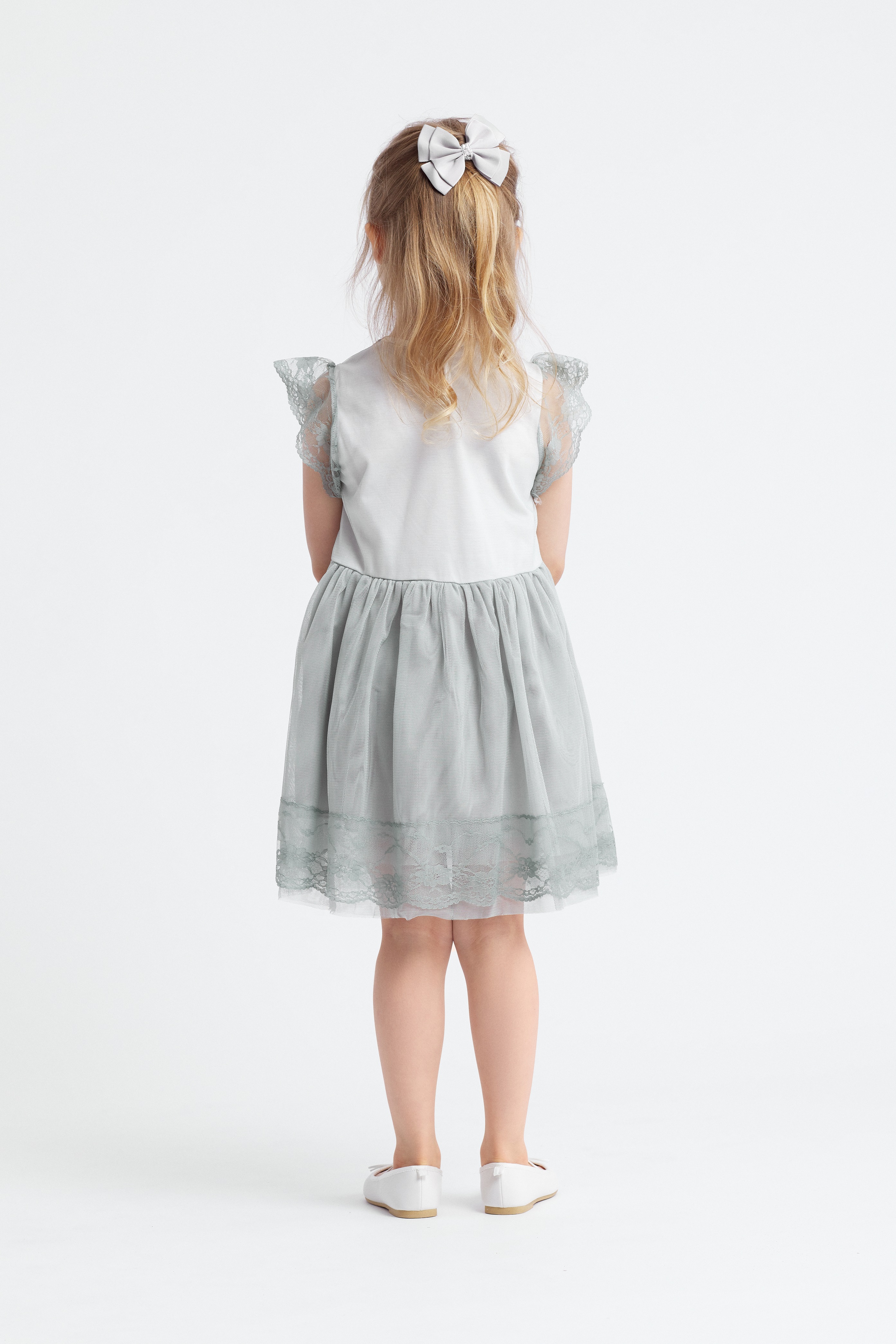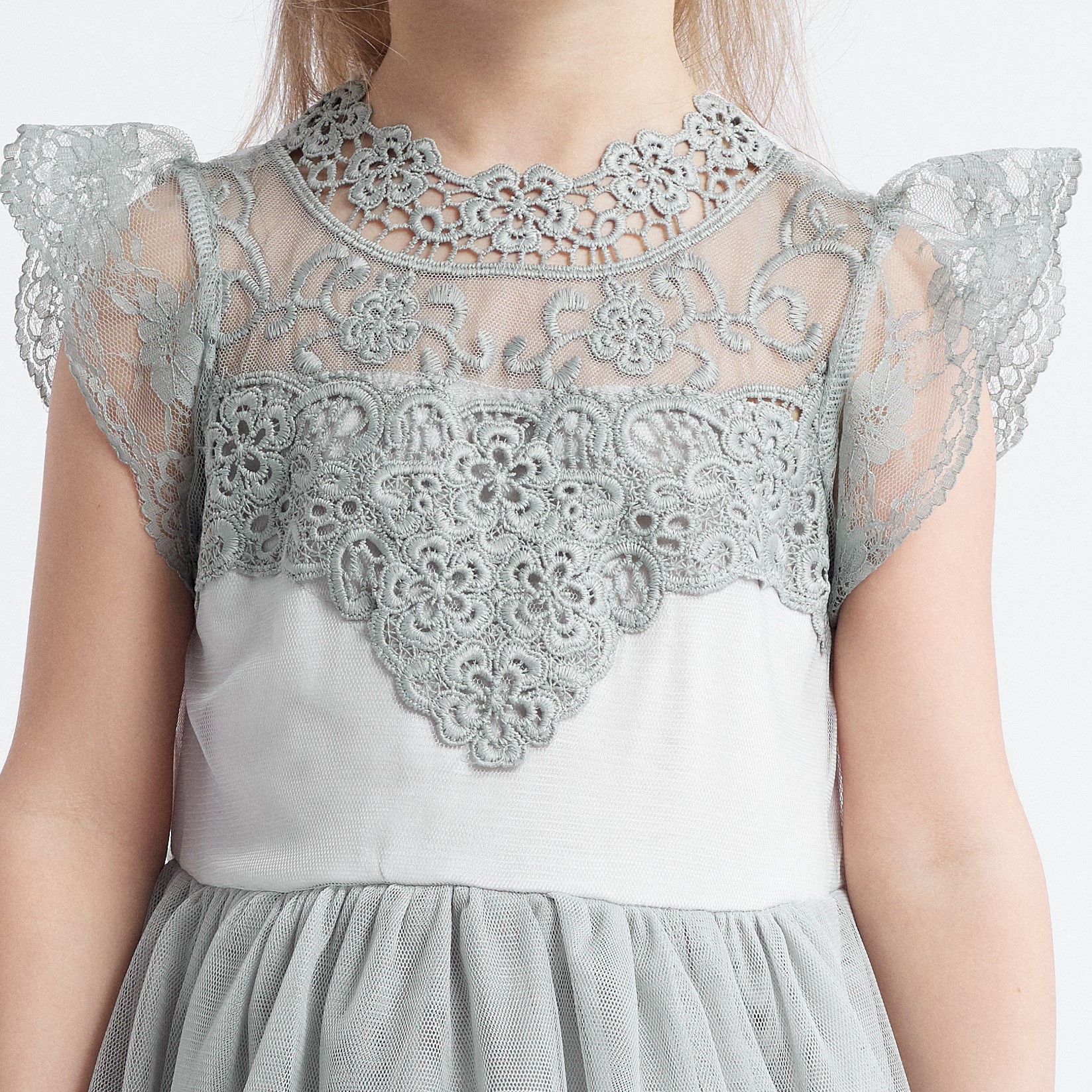 En tidlös, elegant festklänning, flickklänning Nina i grått med delikat spets.