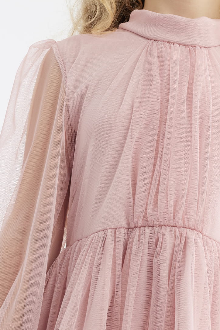 Oktavia flickklänningen har designats med omsorg för varje detalj, även de allra minsta. Dess delikata rosa färg drar till sig blickar och tillför självförtroende. Tyllens textur gör inte bara klänningen vacker utan också angenäm att röra vid.