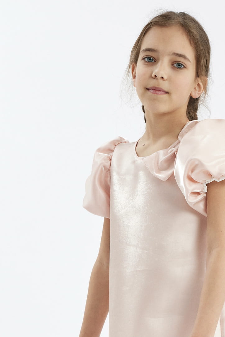 En unik och elegant festklänning för flickor, Rita, i en pudrig rosa nyans.