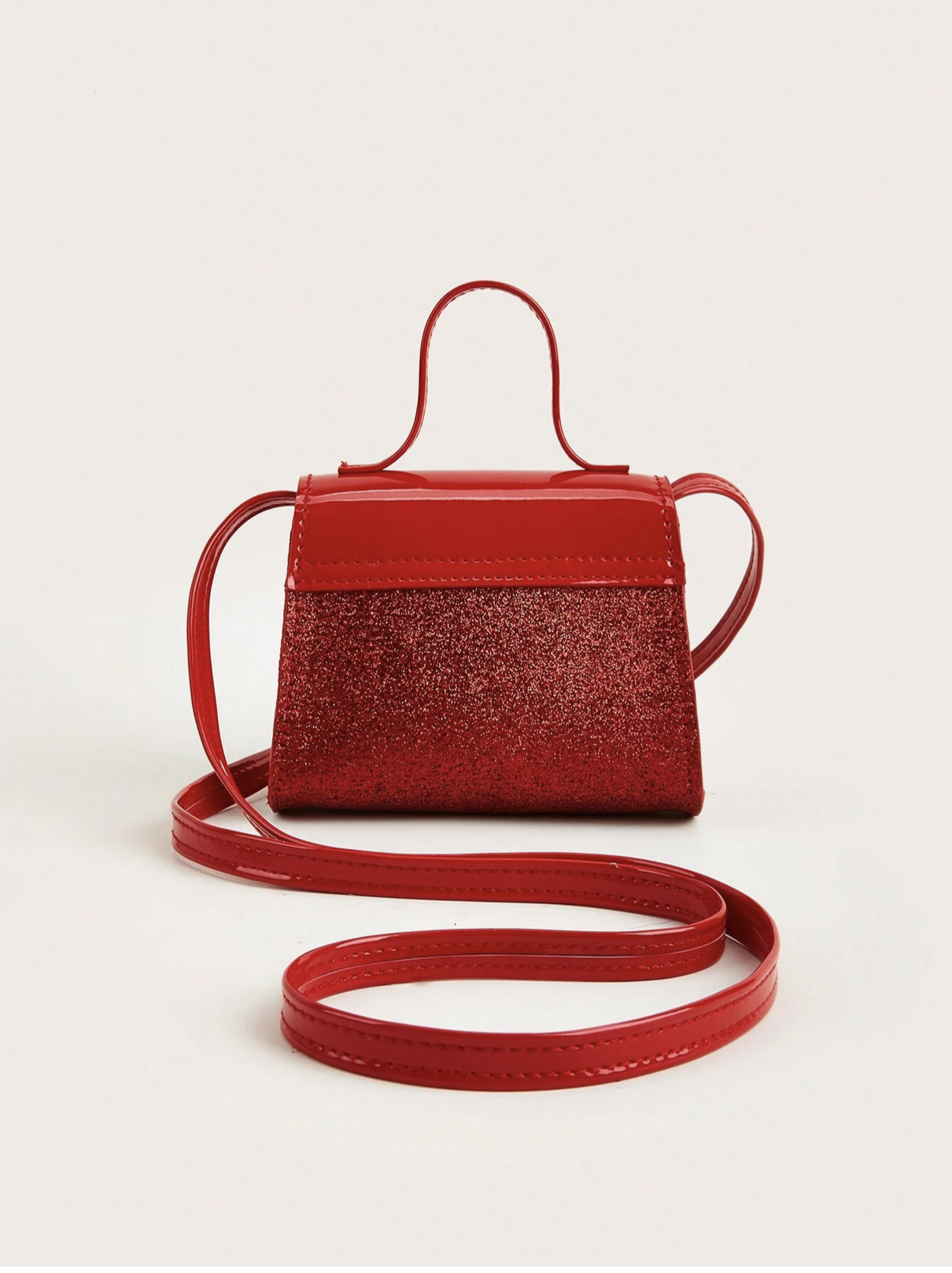 Den röda glitterväskan har tillverkats med tanke på just detta: att vara den perfekta följeslagaren när livet bjuder på fest. Kompakt nog att kännas lätt och bekväm, men ändå rymlig nog för de små skatter som betyder allt – ett litet sminkset, favoritleksaken, eller kanske den fina halsbandet från mormor.