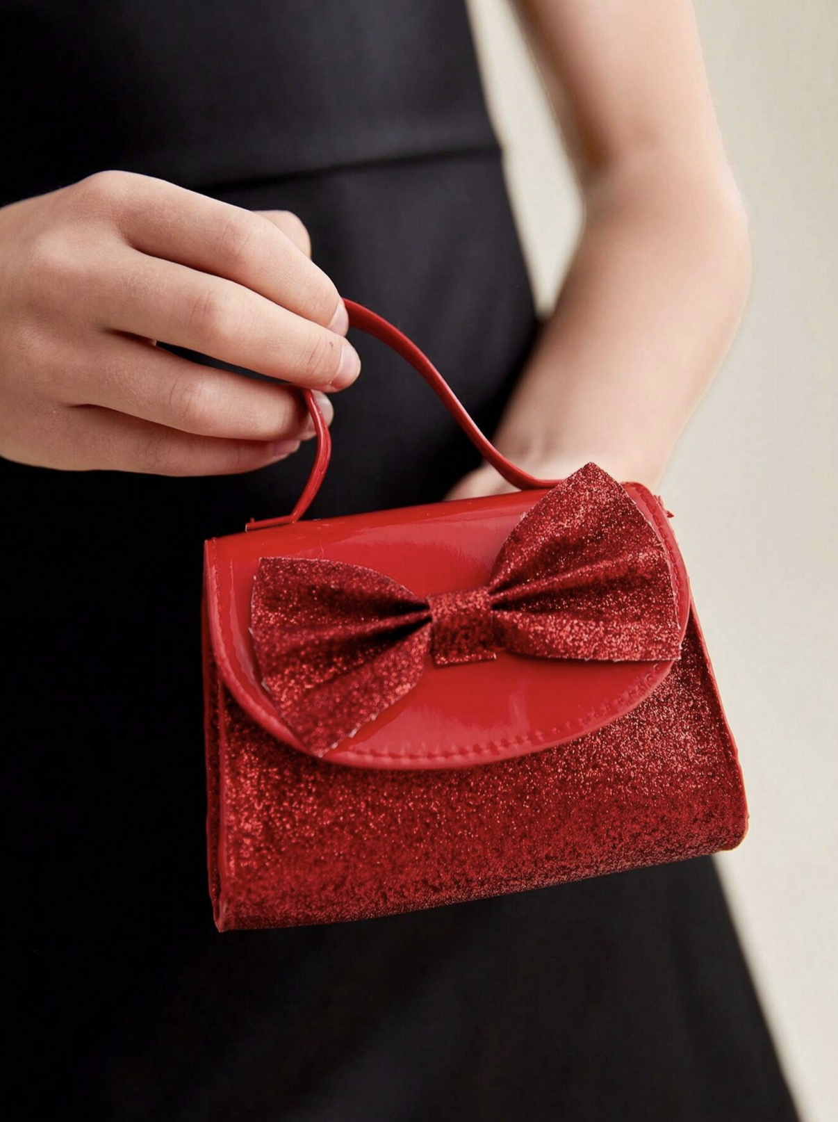 Det finns ögonblick i en flickas liv som förtjänar att firas med något alldeles särskilt. En axelväska som fångar ljuset, väcker beundran och låter henne bära sina skatter med samma elegans som hennes största förebilder. Denna röda festväska med skimrande glitterdetaljer och stilren rosett är inte bara ett accessoar – den är porten till en värld där varje tillfälle blir minnesvärt.