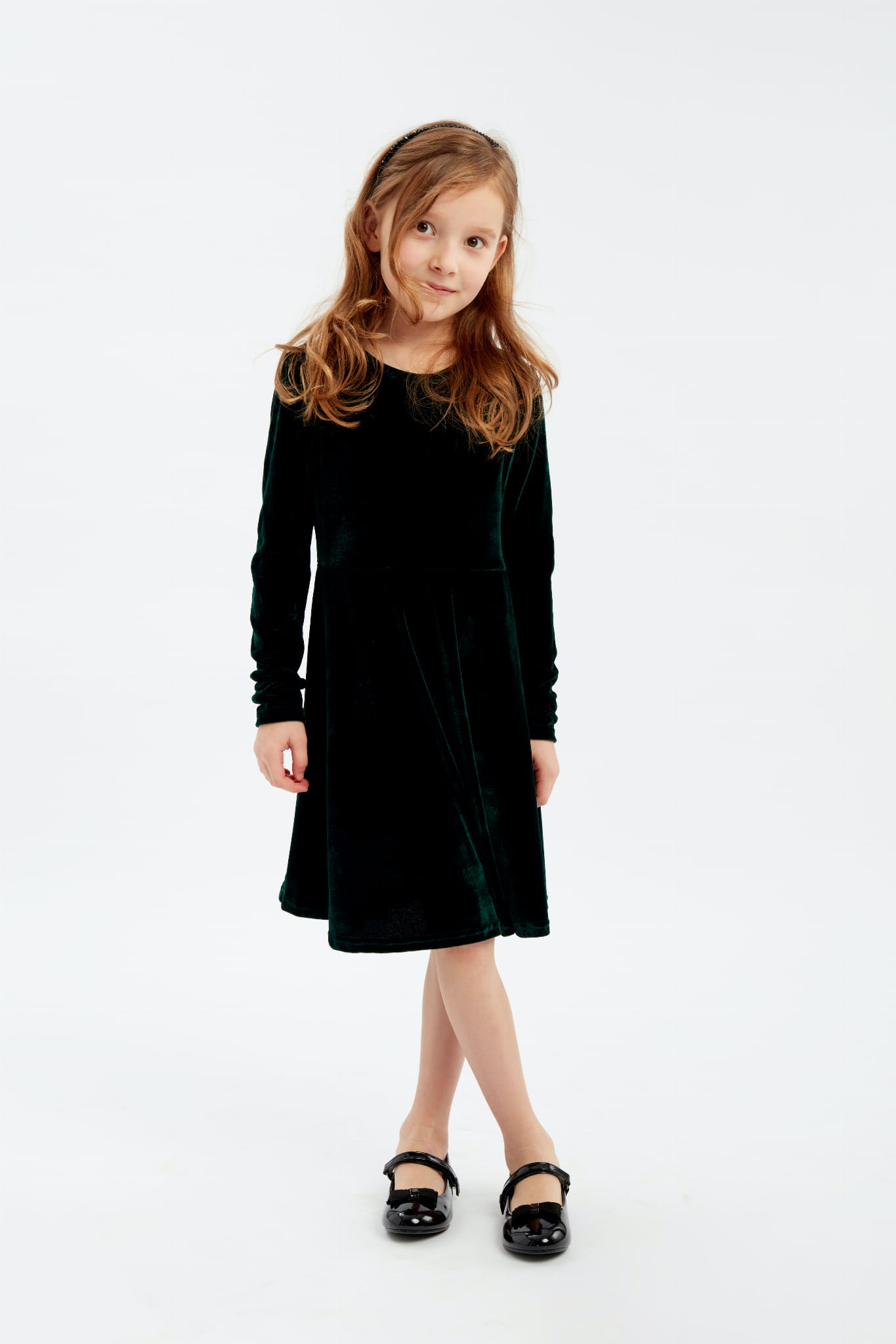 Rosa Unik Sammetsklänning för Flickor i Mörkgrönt