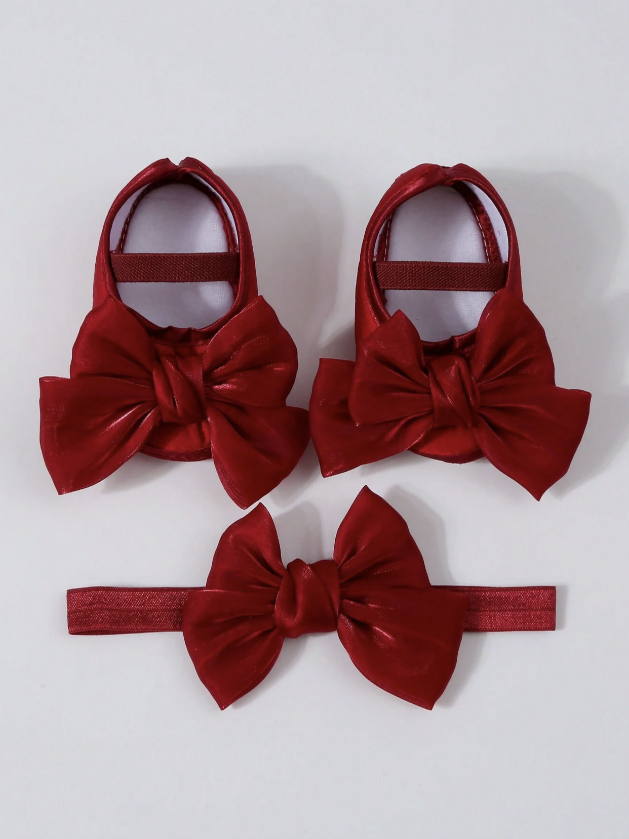 Sammetsröda Babysko och Pannband med Rosett – Ett Set för Små Prinsessor