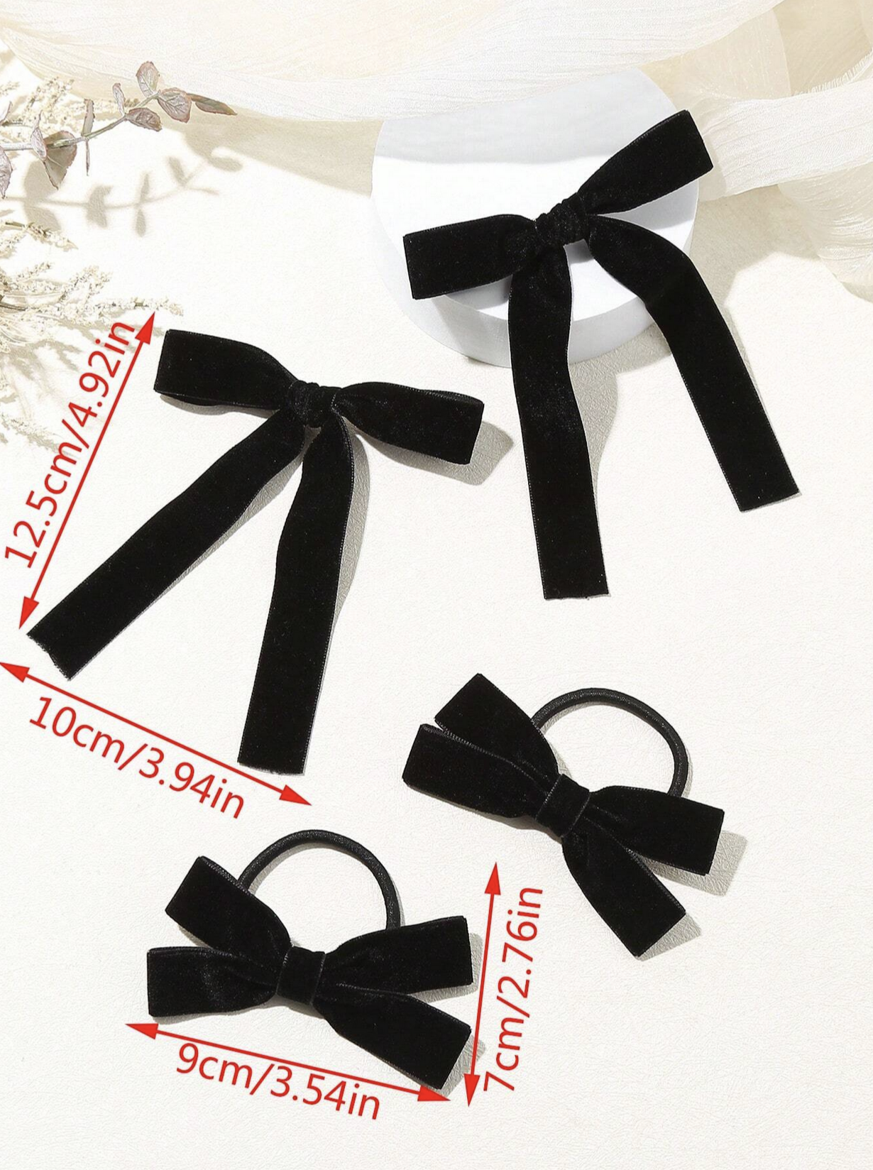 Set med svarta sammetsrosetter för flickor – hårspännen och hårsnoddar i klassisk elegans