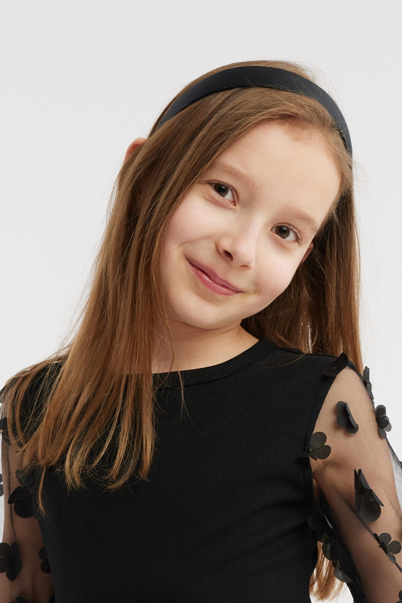 Det delikata glänset i materialet framhäver subtilt frisyren, och det elastiska passformen säkerställer att hårbandet inte glider av huvudet under lek. Bekväm och mjuk på insidan, orsakar det inte obehag även efter många timmars användning, vilket är viktigt för unga användare.