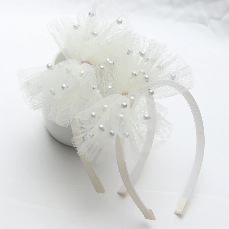 Detta fantastiska tyllhårband har en rosettdesign, utsmyckad med pärlor.